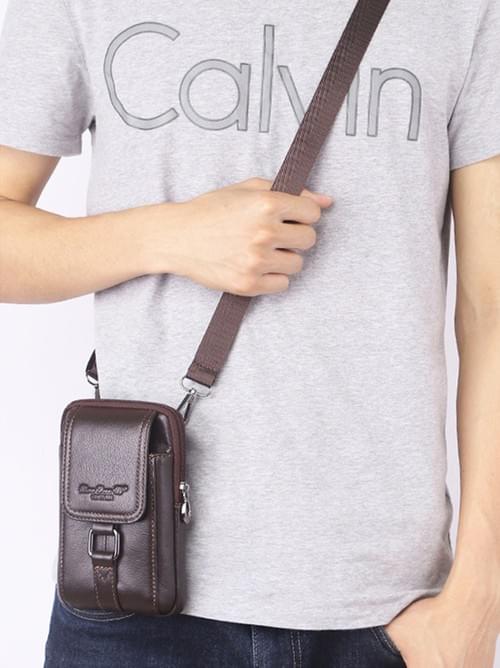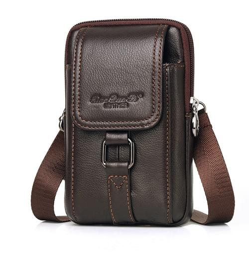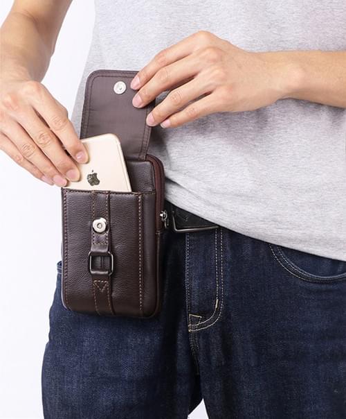 Multi-functional, men's genuine leather phone bag, waist bag, suitable for 5.5-inch or 6-inch phones, with a belt for wearing around the waist, mini and compact. The belt passes through fixed holes, allowing the waist bag to transform instantly. Bring you a whole new experience.