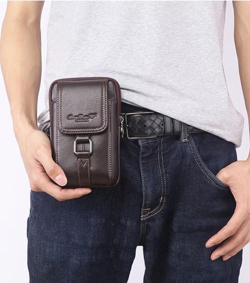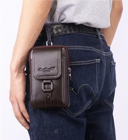 Multi-functional Men's Genuine Leather Phone Waist Bag